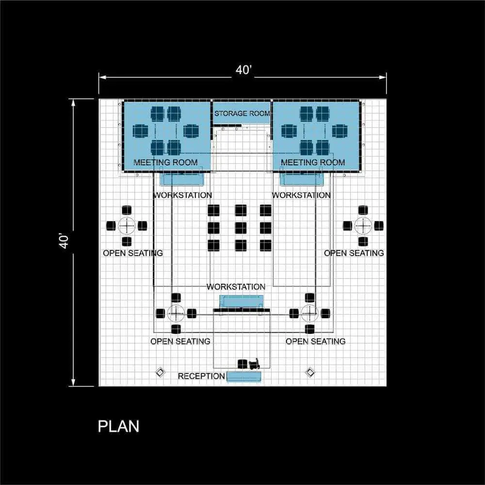 • Product showcase stations, demo counters, and comfortable client interaction areas.